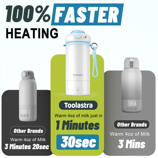 Toolastra Portable Bottle Warmer for Baby on the Go, 16.91oz 100% Faster Heating & Precise Temperature Control, Leak-Proof Design, Child Safety Lock, Ideal for Travel, Formula & Breast Milk Warmer